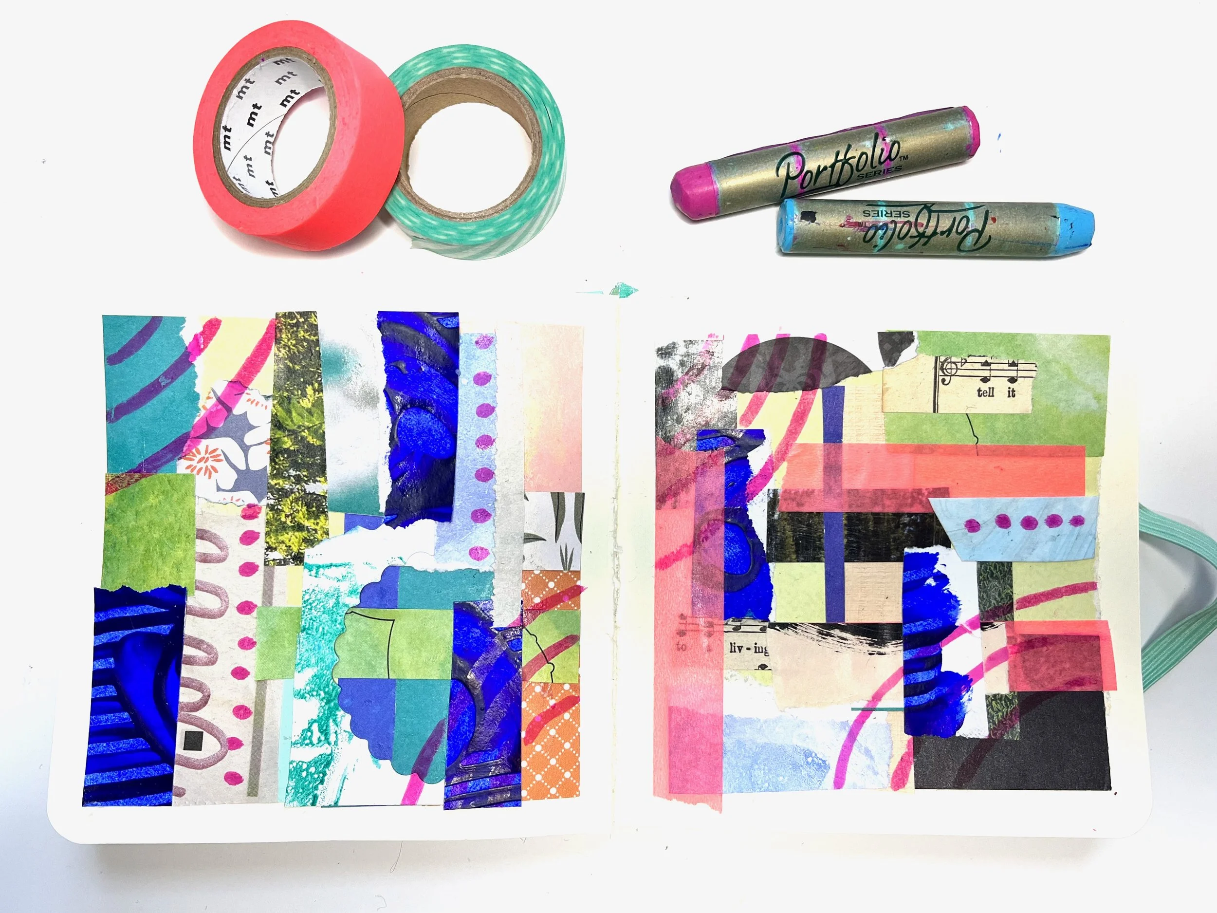 Artist Statement: Cutting, layering, and arranging shapes allows me to tap into a calmer state and access intuition in a busy world. I am drawn to vibrant colors, bold shapes, and materials that need new life, such as vintage book pages, envelopes, and found scraps. My practice emphasizes exploration and play rather than perfection or rigid rules. I also integrate my studies in somatics, expressive arts, and energy medicine, creating space to work through emotions. I believe art can be a form of self and collective care, helping us recalibrate and show up more fully for ourselves and others. Most of all, it can be a fun and accessible tool for everyone.