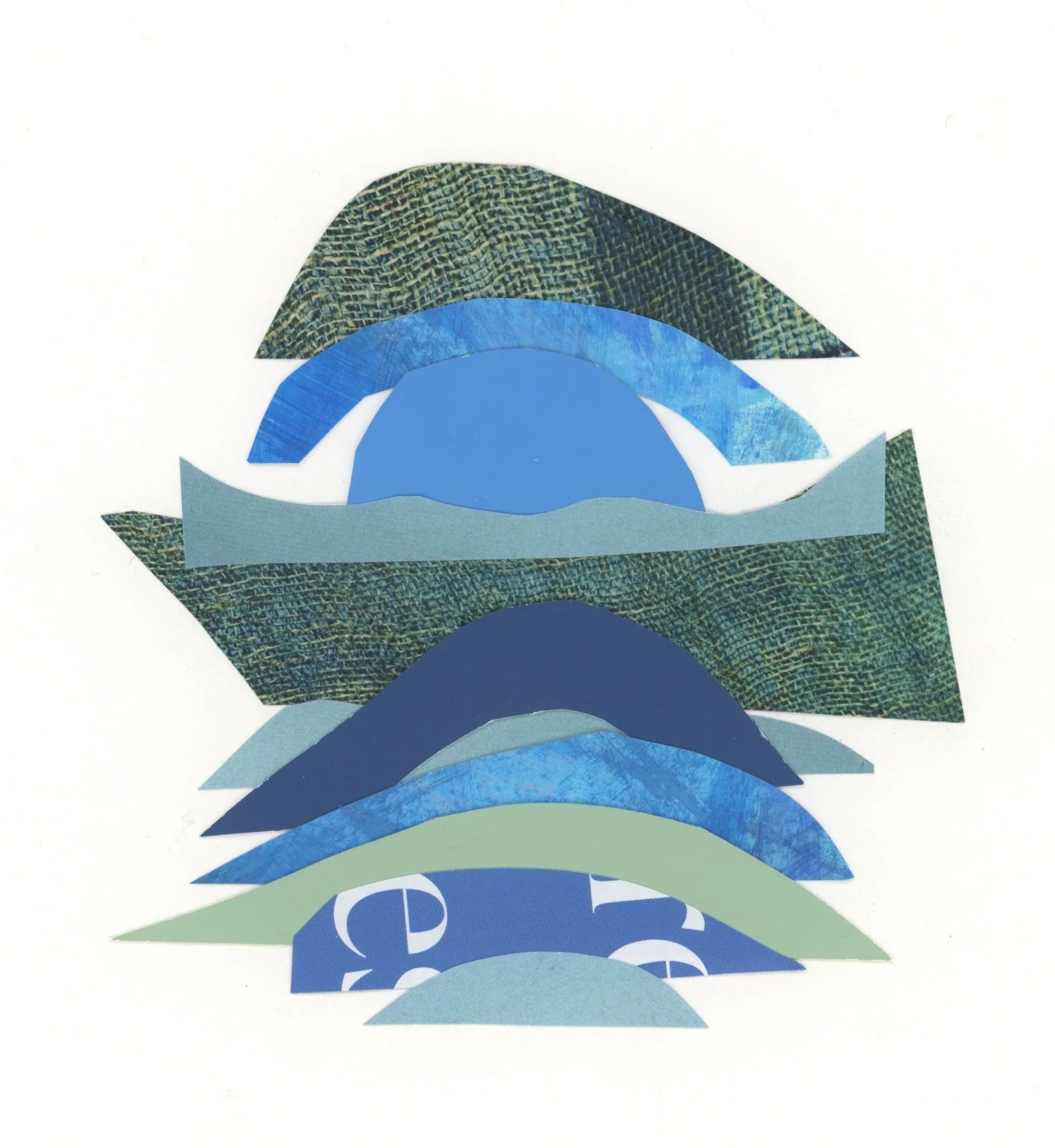 I began making these collages to reorient and create balance again in my life after my father died. They came to resemble cairns, the stone markers hikers build to guide the way. This series holds grief and joy side by side and reflects the ongoing practice of finding steadiness while moving forward.